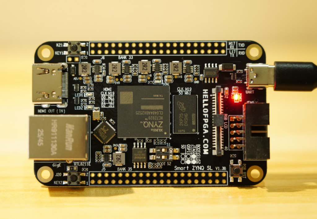 Hello, the Smart ZYNQ SL board requires an external Xilinx JTAG programmer, as it does not have a built-in programming function. The onboard Type-C port is only used for serial communication and power supply, so it cannot be used for programming. We recommend using a Xilinx programmer that supports a 2.54 mm pitch 5×2 PIN connector.