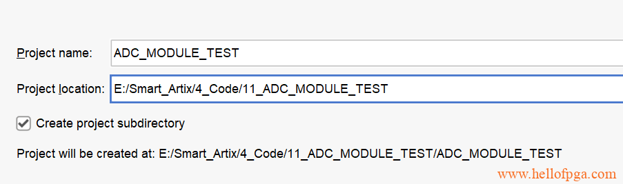 • 工程创建目录:E:\Smart_Artix\4_Code\11_ADC_MODULE_TEST