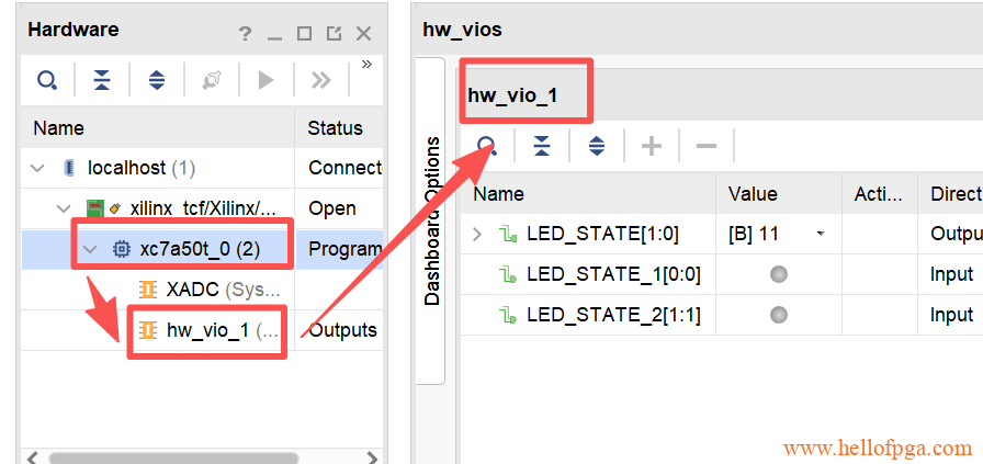 2)我们接下来用VIO来输入LED_STATE的值。相当于用VIO来控制LED灯的亮与灭