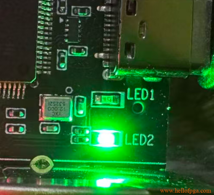5)修改之后 点选OK后,我们会发现其中一个LED(LED2)灯被点亮