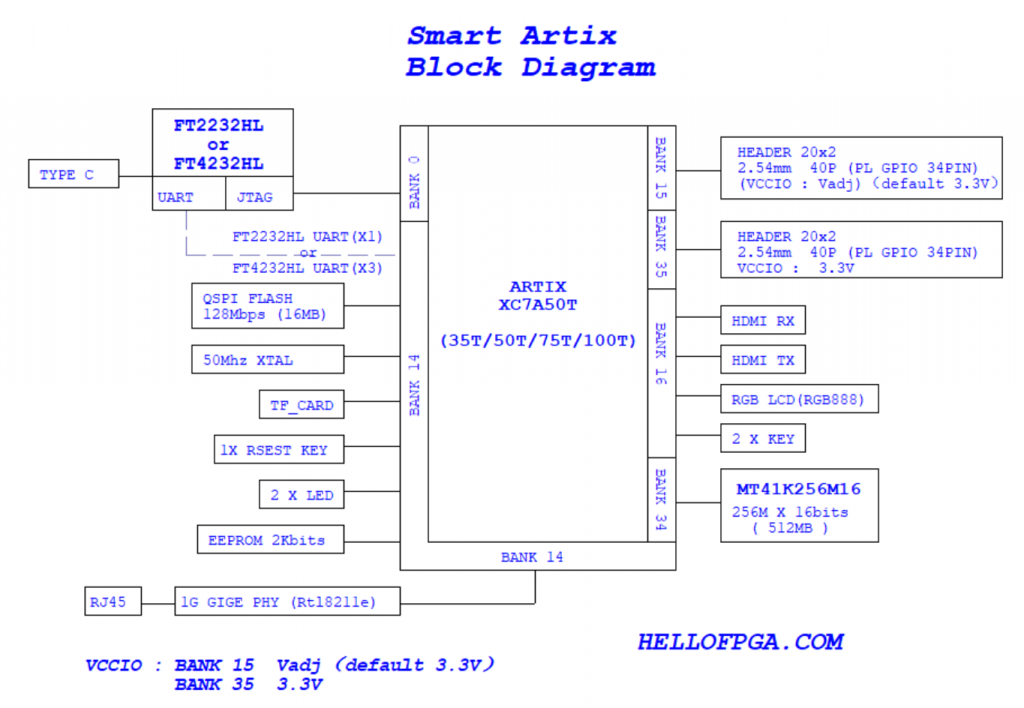 备注:Smart Artix主板 第一版就是V1.3版,因为排针部分和Smart ZYNQ V1.3版兼容,所以为了方便理解Smart Artix主板也从V1.3版开始编号。